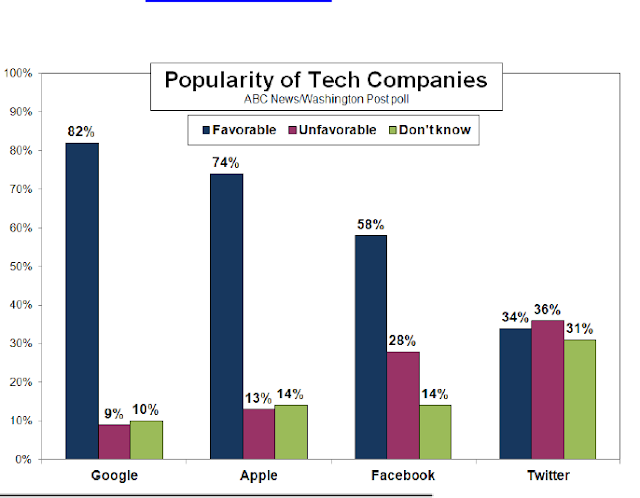 According to a new poll conducted by ABC News and the Washington Post, Google seems to be the more popular tech companies amongst the giants. The poll, which queried more than 1,000 random US citizens shows that Google is more favorable among all age groups, and is even more popular than Facebook and Twitter. What’s even more interesting about the results of this poll is the actual numbers themselves. Google held the most favorable view at 82%, while Apple secured a 74% favorable vote. The reason this is so interesting is because as far as overall product satisfaction there are NO devices that come anywhere near the iPhone, or iPad for that matter. Quarter after quarter, Apple consistently schools Google but for some reason the general public likes Google more. Which begs the question: If Apple is selling more products, but the public feel Google is more favorable, which company is really making the better products?